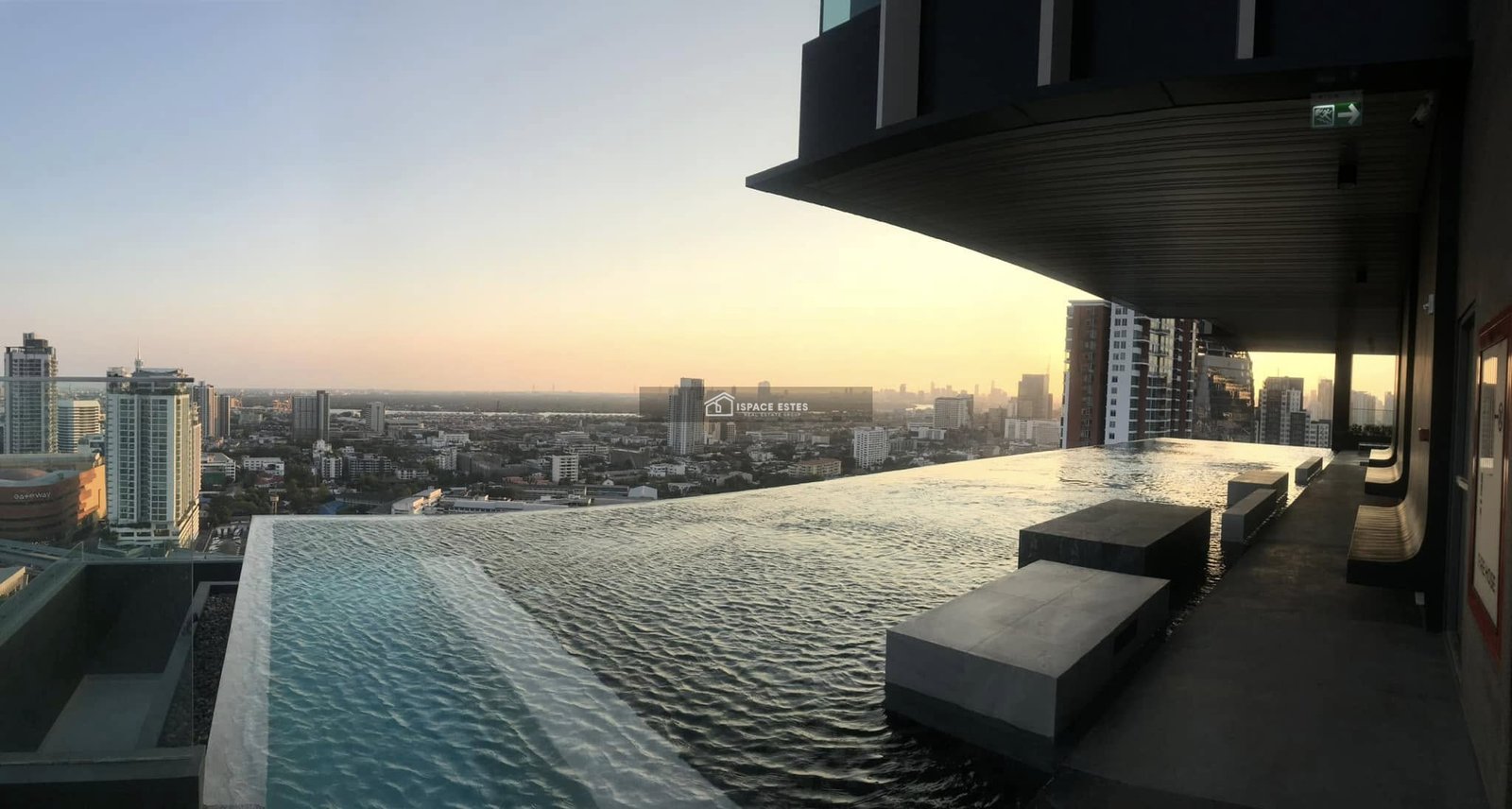 ให้เช่าคอนโด Rhythm เอกมัย ใกล้ปากซอยสุขุมวิท 63 ขนาด 38 ตร.ม ชั้นสูง 29 วิวพิเศษ panorama วิวใจกลางเอกมัย เดินทางสะดวกใกล้ BTS เอกมัย ในระยะ 350 เมตร